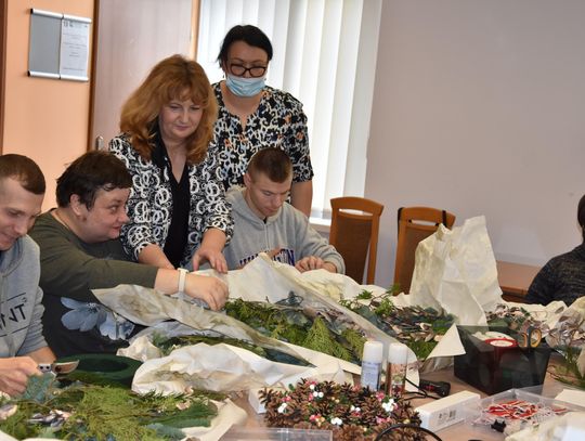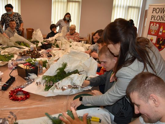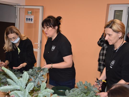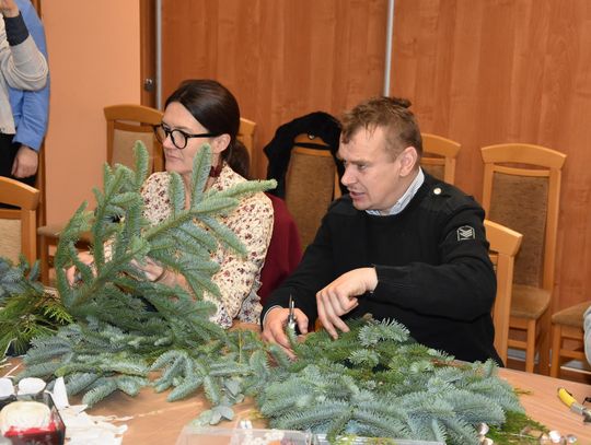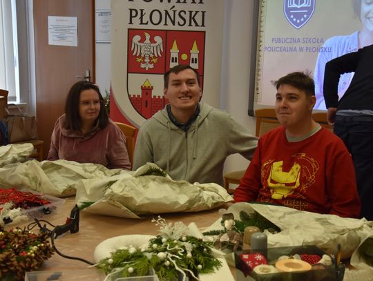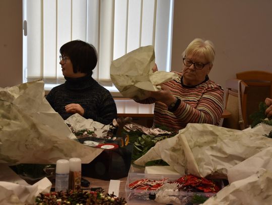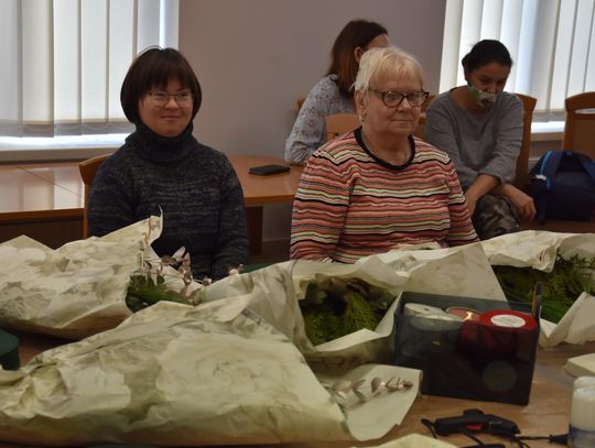 Podczas zajęć uczestnicy tworzyli m. in. stroiki świąteczne. Warsztaty poprowadziły wykładowczynie z Publicznej Szkoły Policealnej w Płońsku. Mówi Adrianna Gołaszewska z tej placówki oświatowej.