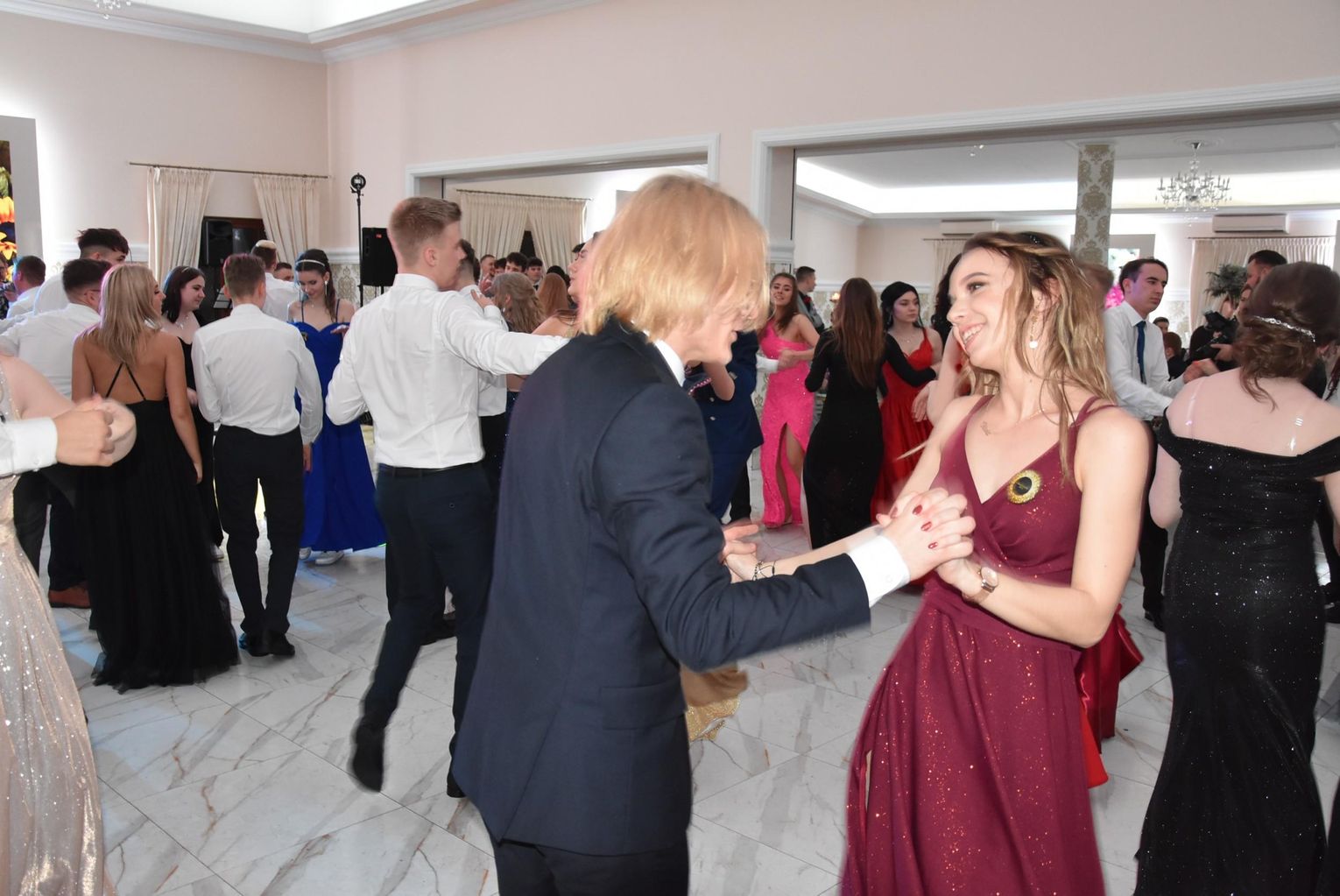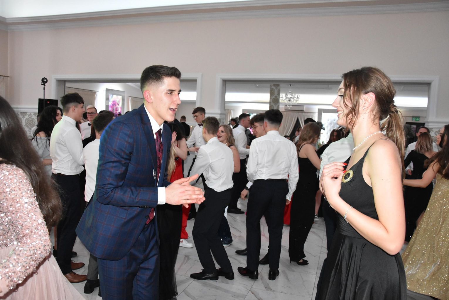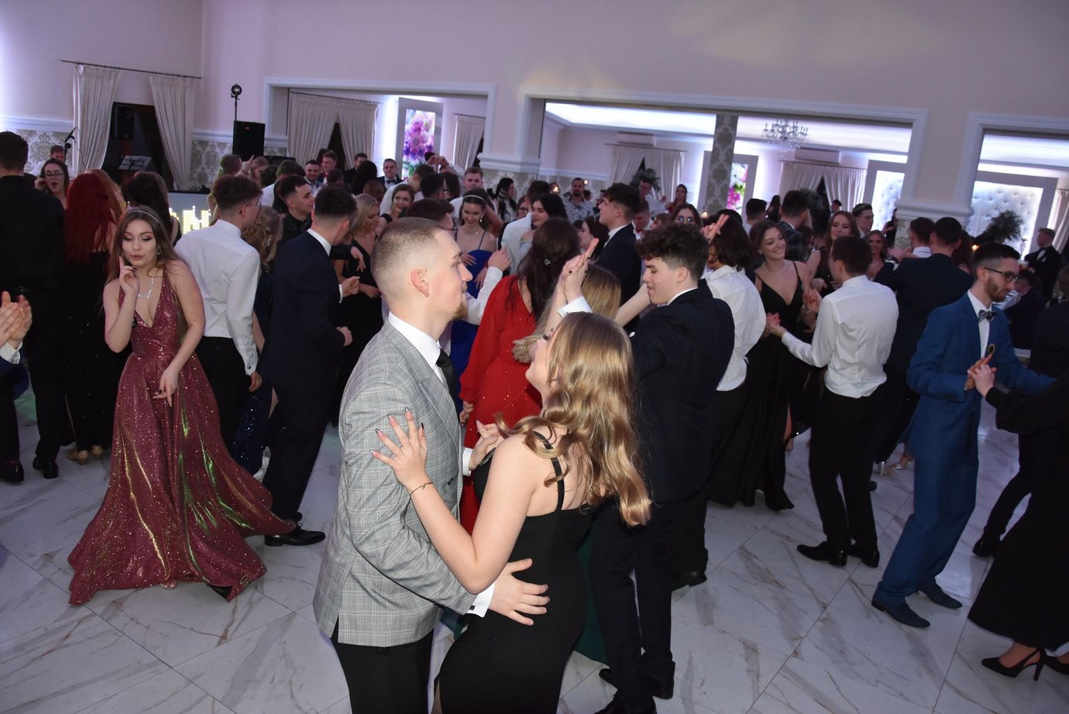 Łącznie 162 maturzystów I Liceum Ogólnokształcącego im. Henryka Sienkiewicza w Płońsku wraz z osobami towarzyszącymi bawiło się podczas studniówki w Drobinie. Impreza rozpoczęła się od poloneza, którego zatańczono w trzech grupach. Później składając życzenia głównym bohaterom wieczoru głos zabrała dyrektor placówki: Karina Kmiecińska i starosta Elżbieta Wiśniewska. Przedstawiciele komitetu rodzicielskiego czyli organizatora cieszyli się, że ostatecznie pomimo iż szkoła przeszła na naukę zdalną udało się zorganizować studniówkę