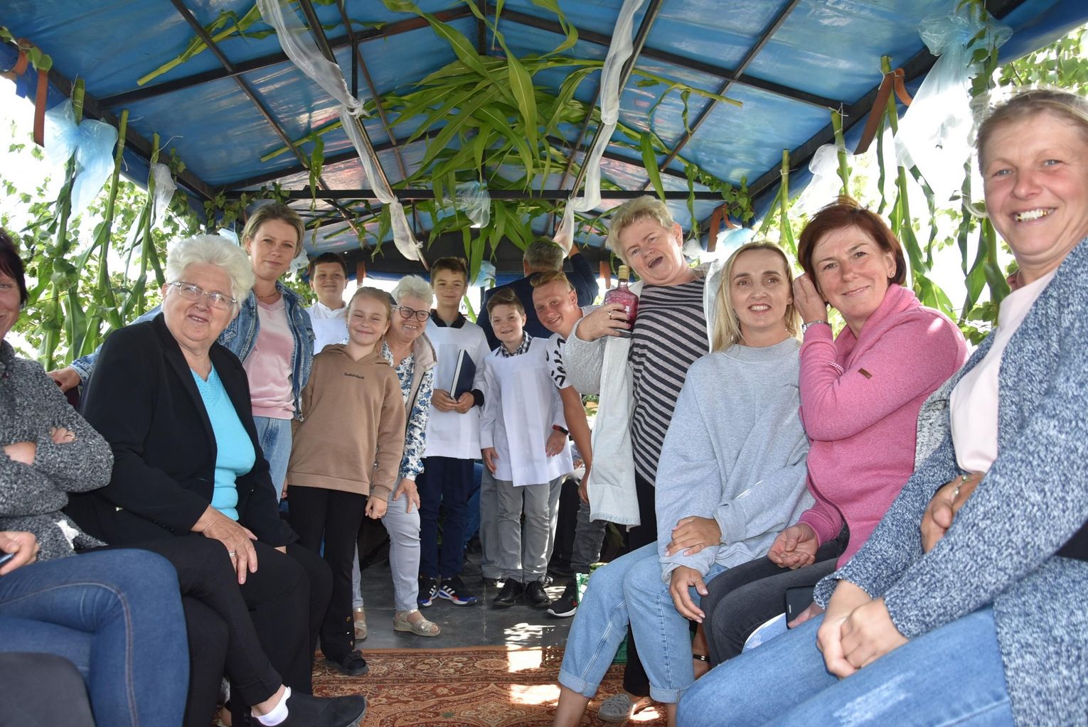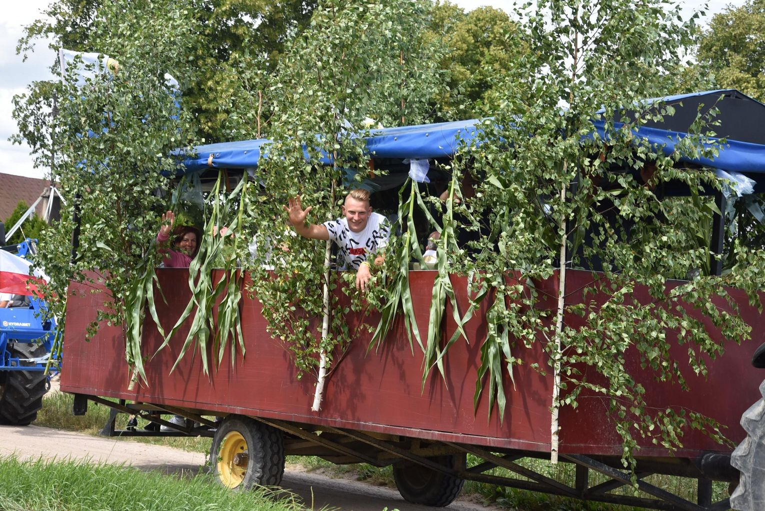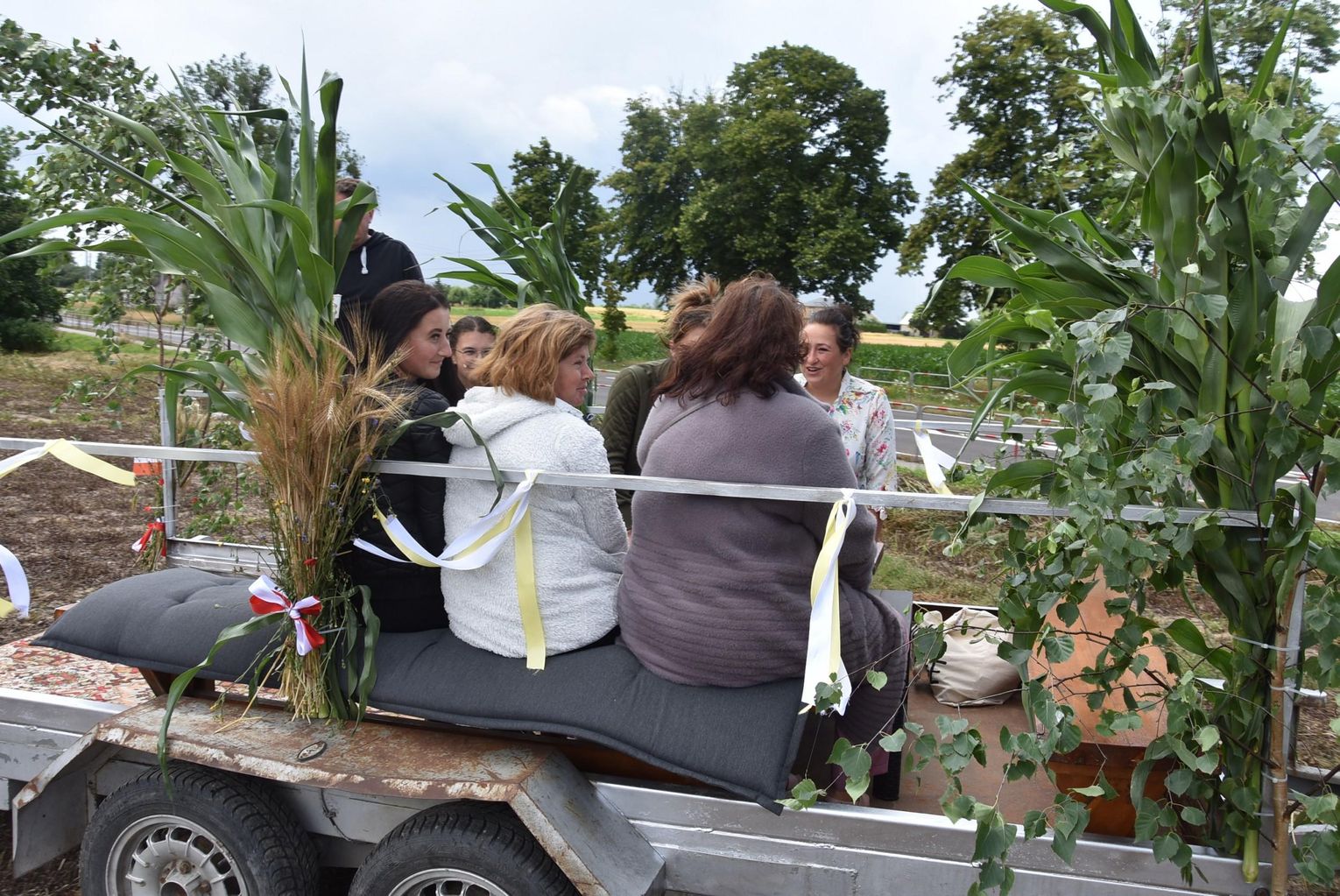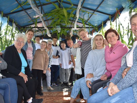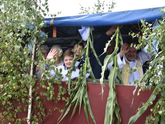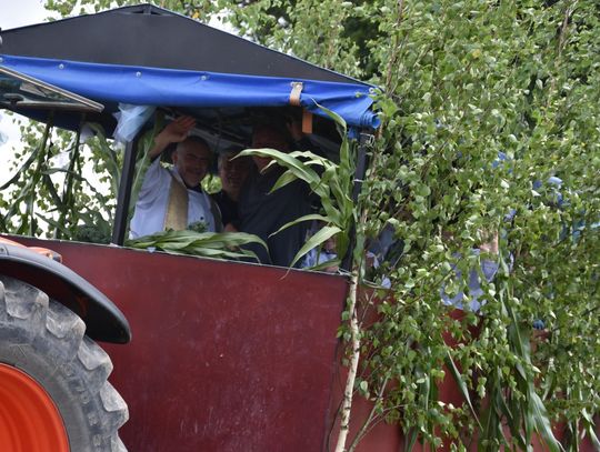Podczas święcenia nie zabrakło akcentów artystycznych. Proboszcz Grzegorz Ślesicki, pola „kropił” z pięknie udekorowanego ciągnika. Przy każdym z wytyczonych punktów odbyła się też krótka modlitwa.