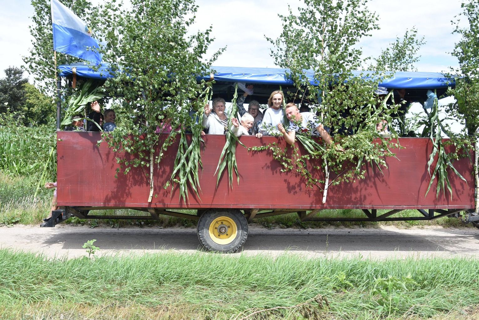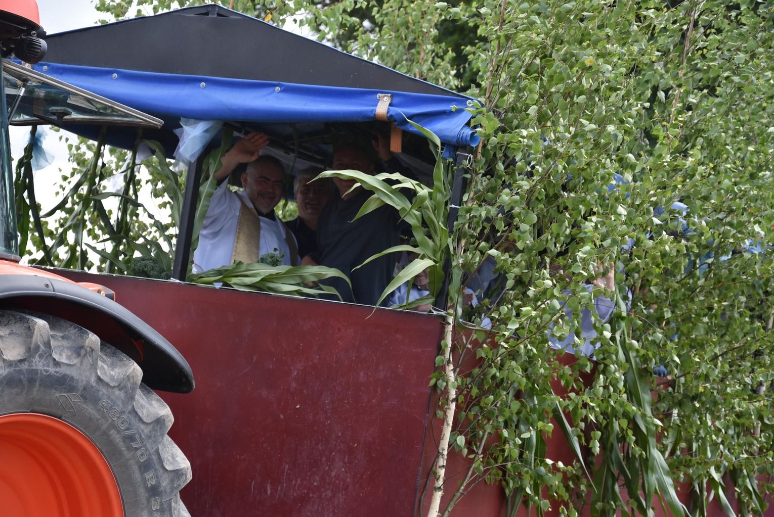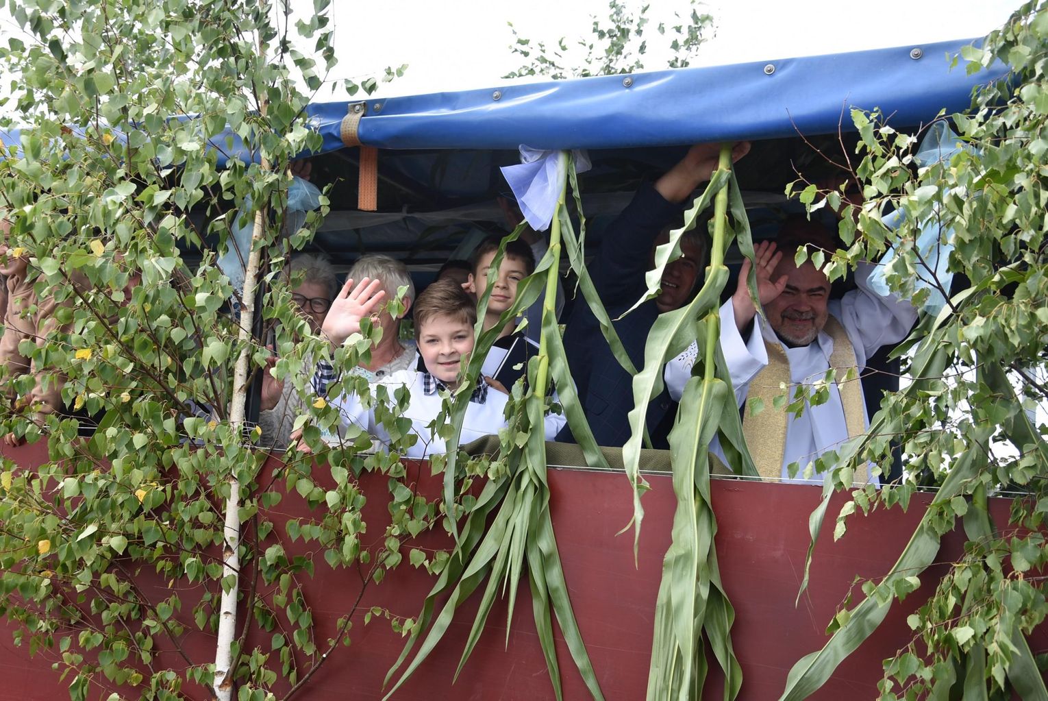 Podczas święcenia nie zabrakło akcentów artystycznych. Proboszcz Grzegorz Ślesicki, pola „kropił” z pięknie udekorowanego ciągnika. Przy każdym z wytyczonych punktów odbyła się też krótka modlitwa.
