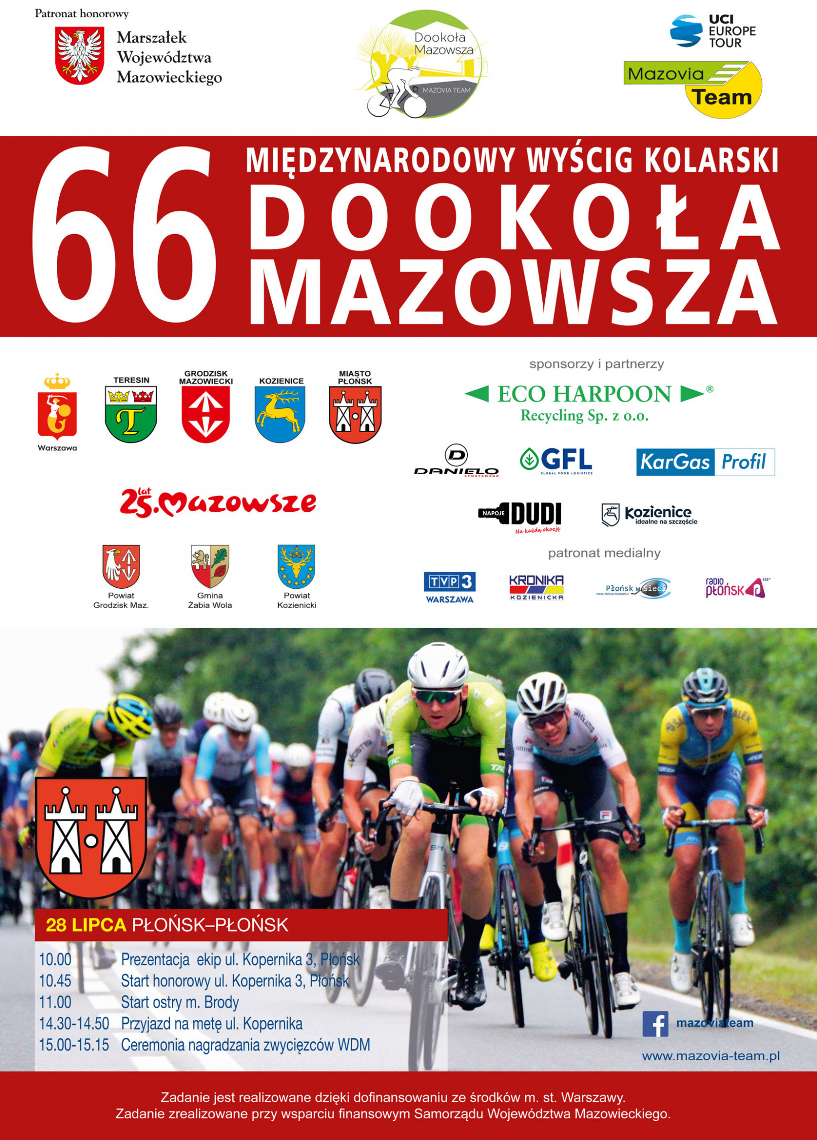 - Przyjęliśmy 21 drużyn zagranicznych oraz 8 polskich, łącznie 174 kolarzy – informują organizatorzy - Do udziału zgłosiły się wszystkie ubiegłoroczne zagraniczne ekipy, co daje nam satysfakcję jako organizatorom i potwierdza, że wyścig cieszy się dużym zainteresowaniem, zwłaszcza w Europie. Mamy nadzieję, że zawody przeprowadzimy na dobrym poziomie sportowym i organizacyjnym, a kibice otrzymają solidną porcję emocji kolarskich związanych z „walką o sekundy” - czytamy na stronie dookolamazowsza.pl.