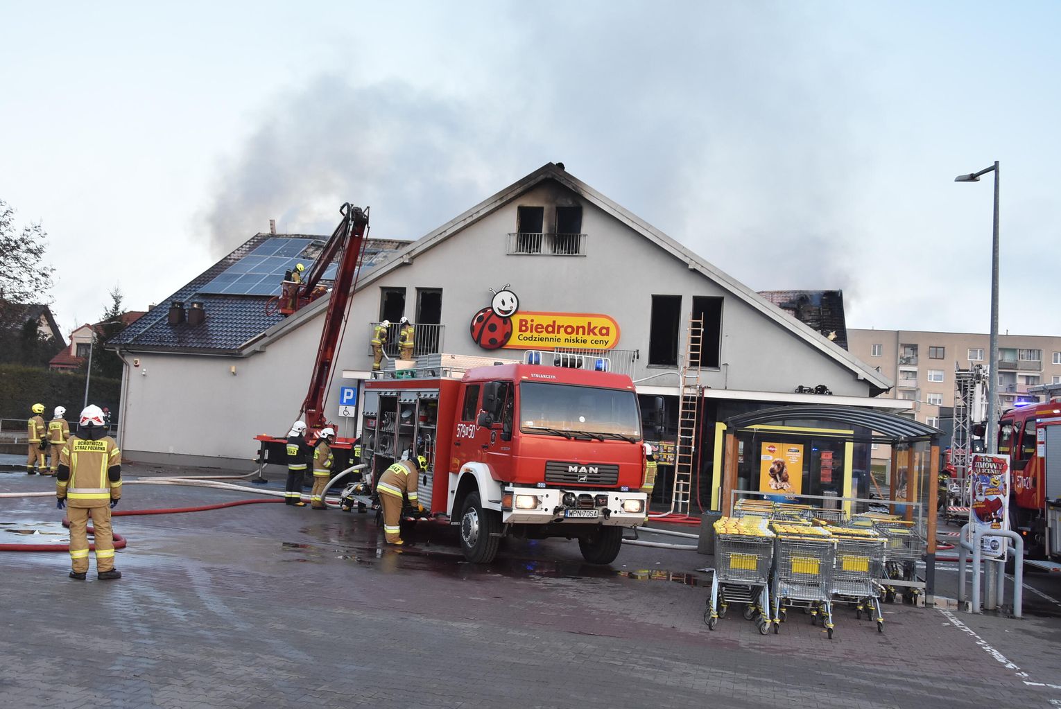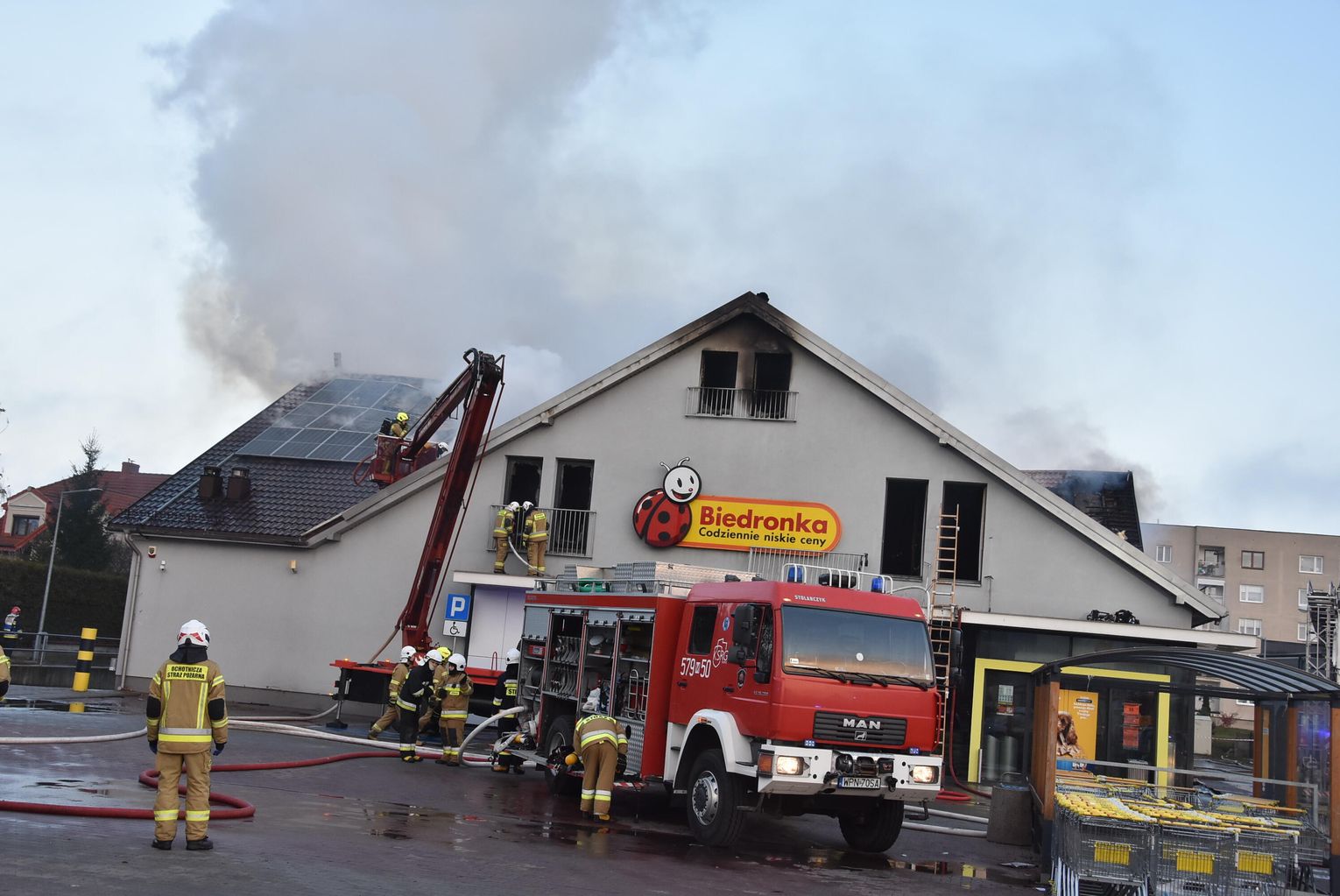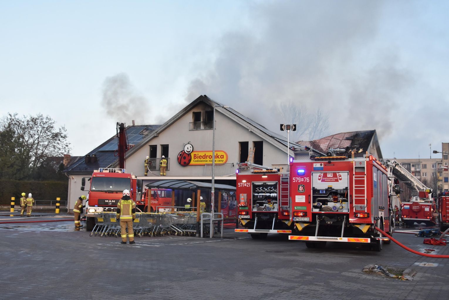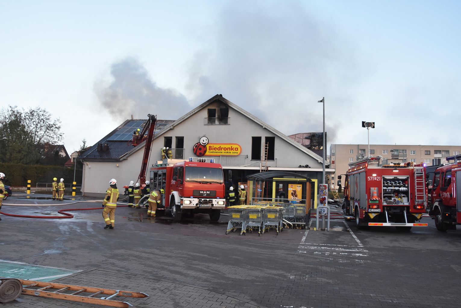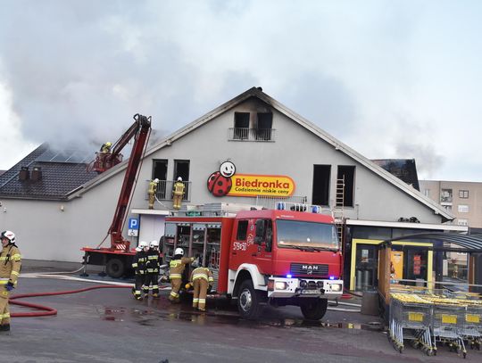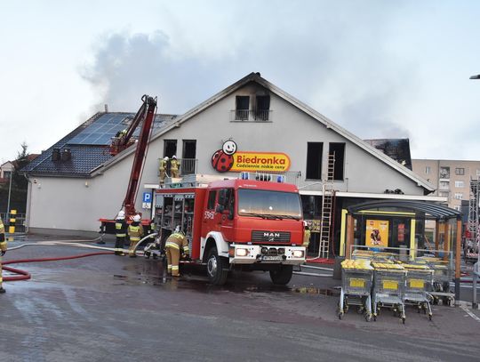 Pożar marketu Biedronka przy ulicy Młodzieżowej w Płońsku