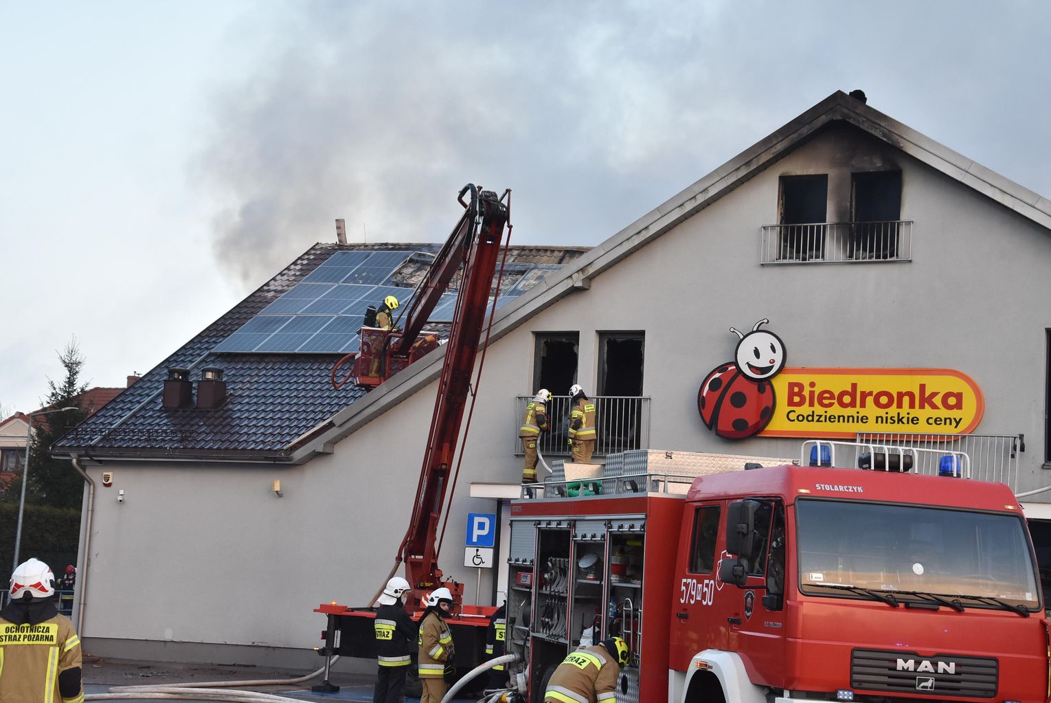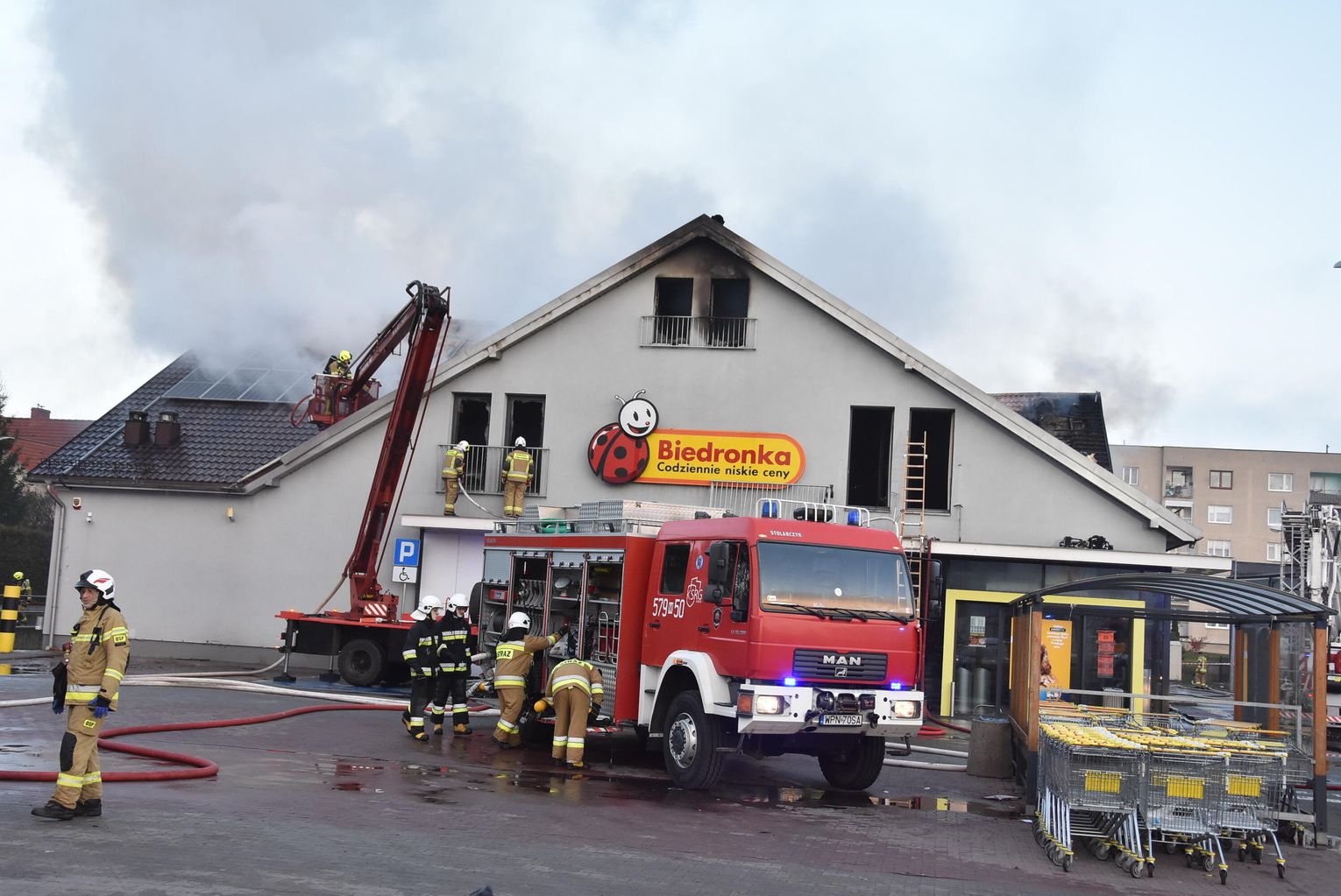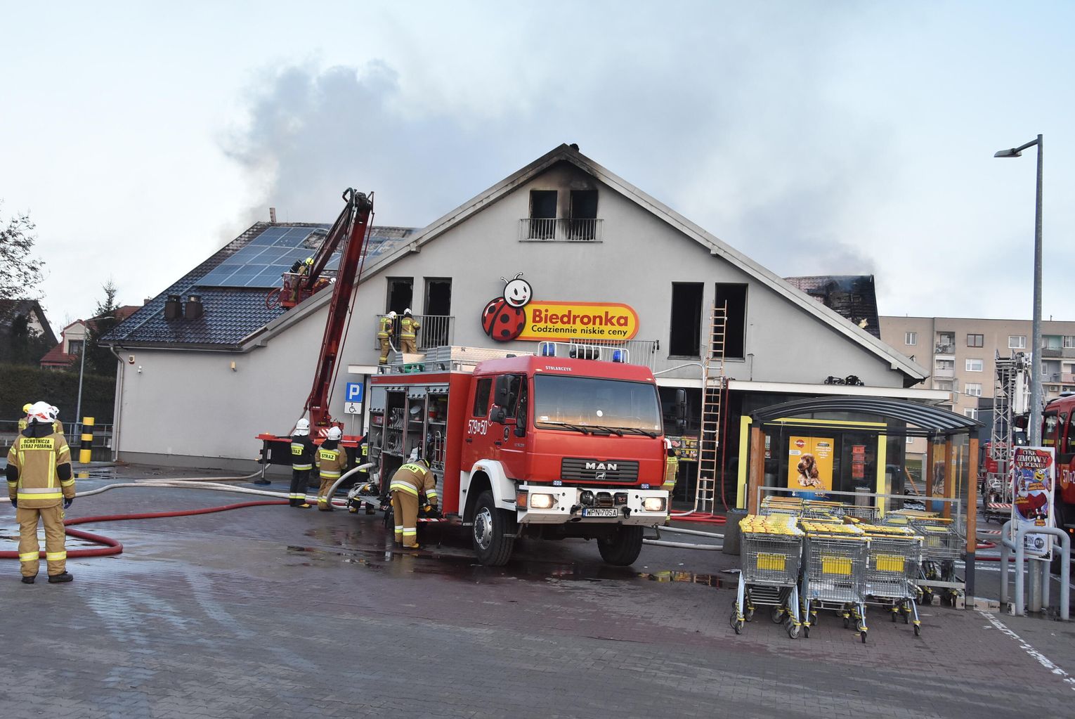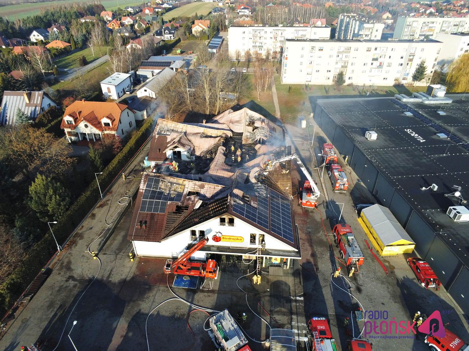 Pożar marketu Biedronka przy ulicy Młodzieżowej w Płońsku